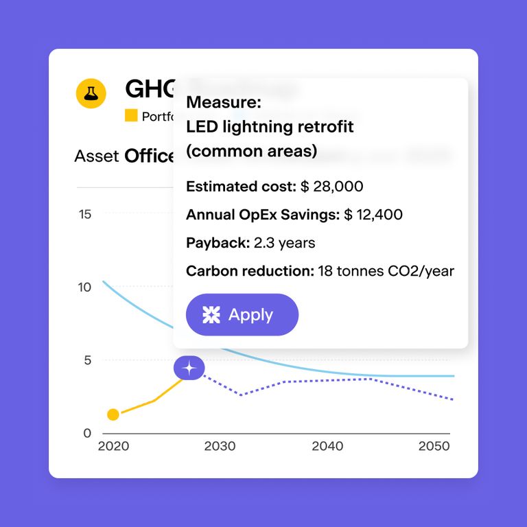 Boost NOI by identifying outliers, optimizing retrofits, and tracking assets against CRREM or custom pathways.
